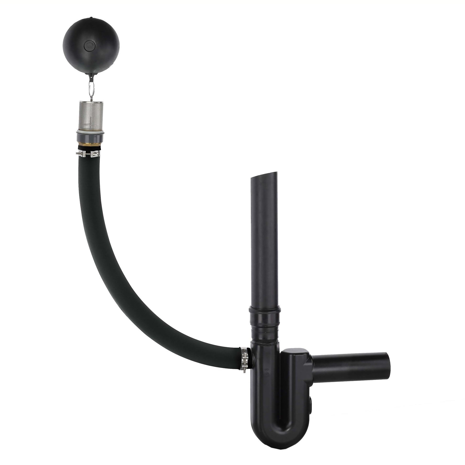 Advantage: retention throttle and overflow siphon in one part that adapts to the water level. Due to the flexible hose, the throttle adapts to the water level.