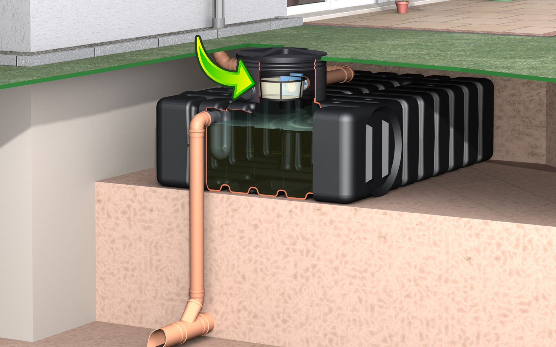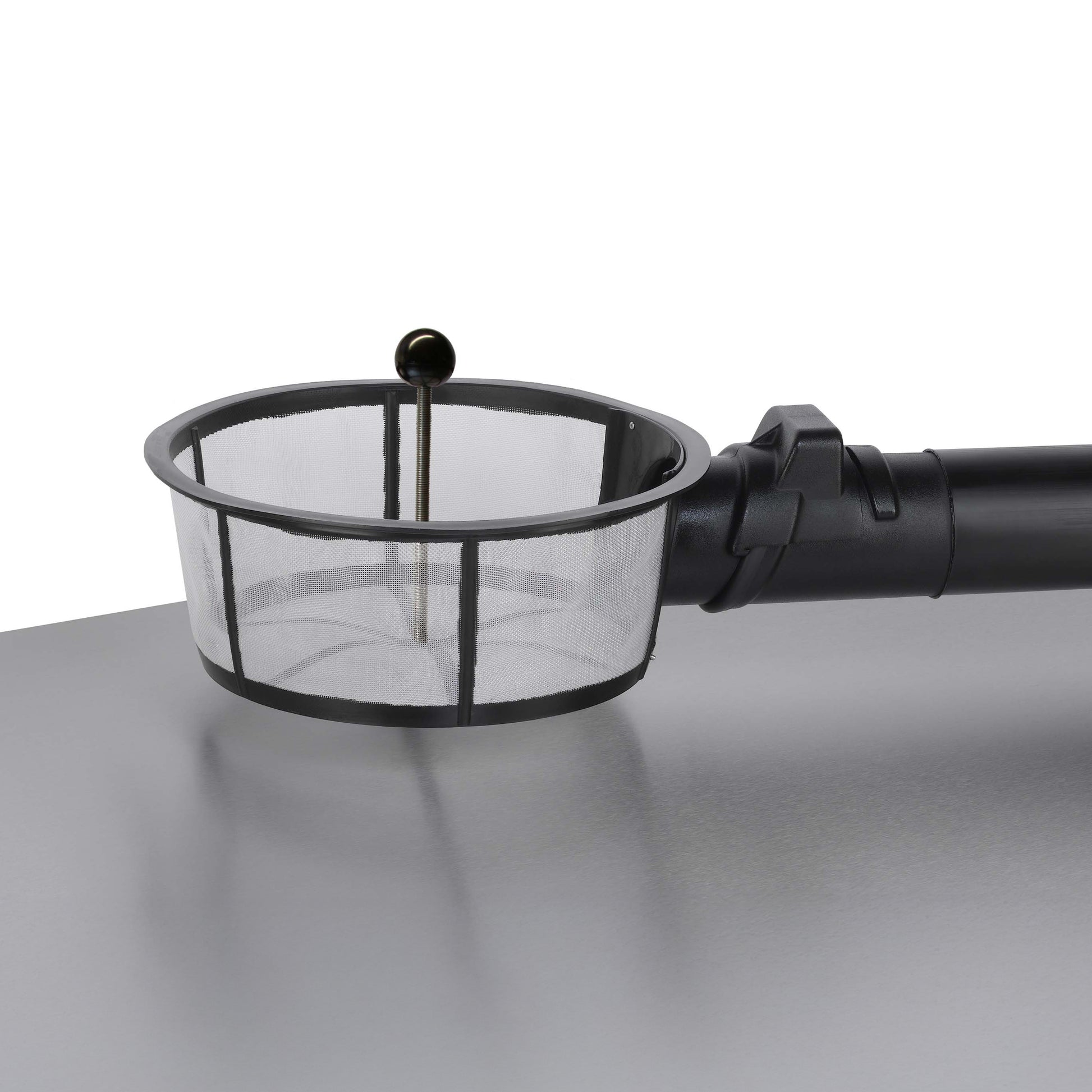 Rainwater filter with basket dirt trap for installation in your low-profile rainwater tank. The filter basket is attached onto the connection outlet pipe with a push fit gasket. The weight of the basket and the design of the connection seals the filter in place. The filter basket can be easily removed and reinserted using the removal rod.