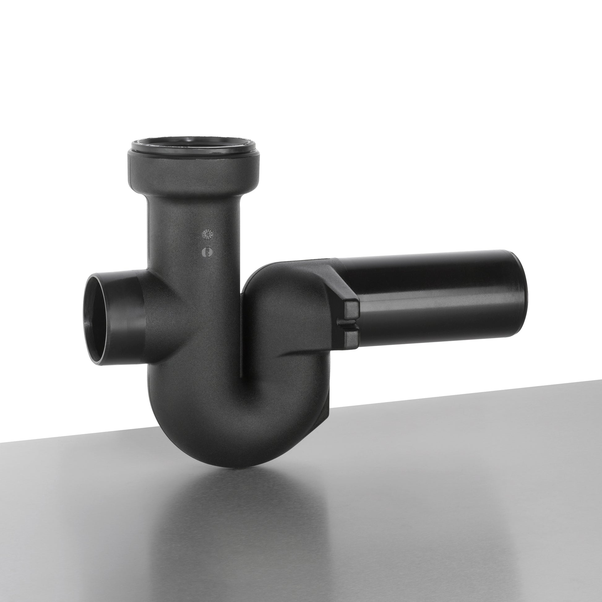 Overflow siphon with odour trap DN 150 which is installed between the filter and the sewage system.