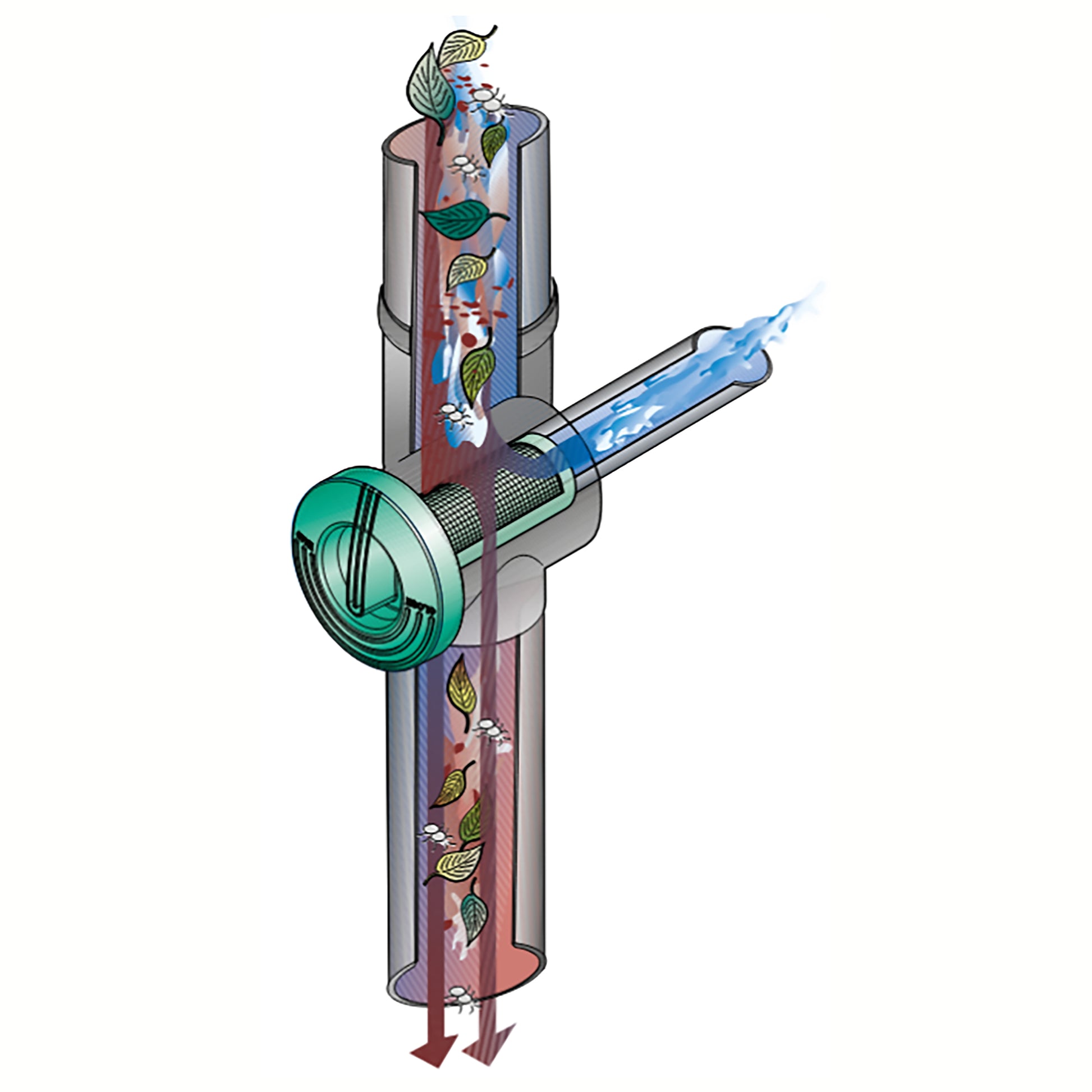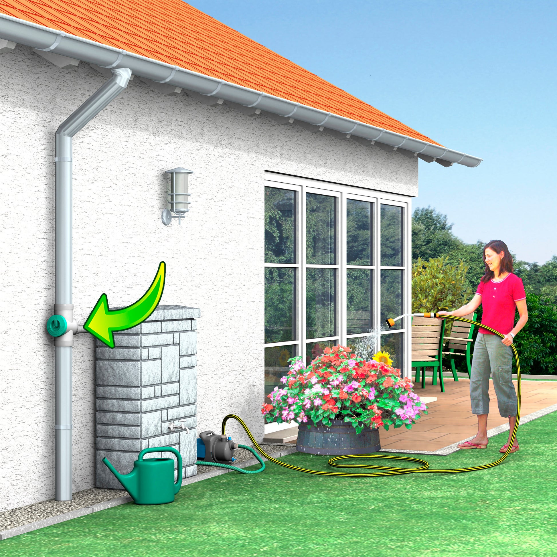The 3P rainwater collector Inox collects and filters rainwater for rain barrels and smaller rainwater storage tanks. The filtered-out dirt is flushed into the sewer system with some residual water. It has an overflow function through the backwater principle. The water supply can also be regulated via the green rotating handle (summer/winter operation). The fine filter made of stainless steel is integrated in the rotary handle. With a mesh size of 1.0 x 1.0 mm, the filtered water can also be used in the house.