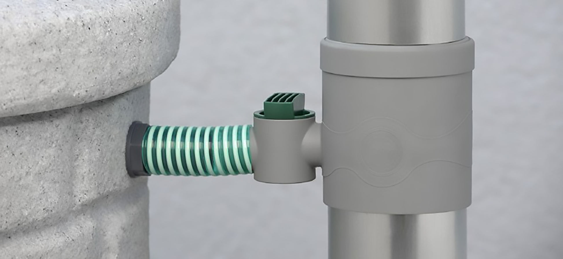 Its versatile design allows easy installation on both round and square downpipes, seamlessly directing filtered rainwater into a storage barrel.